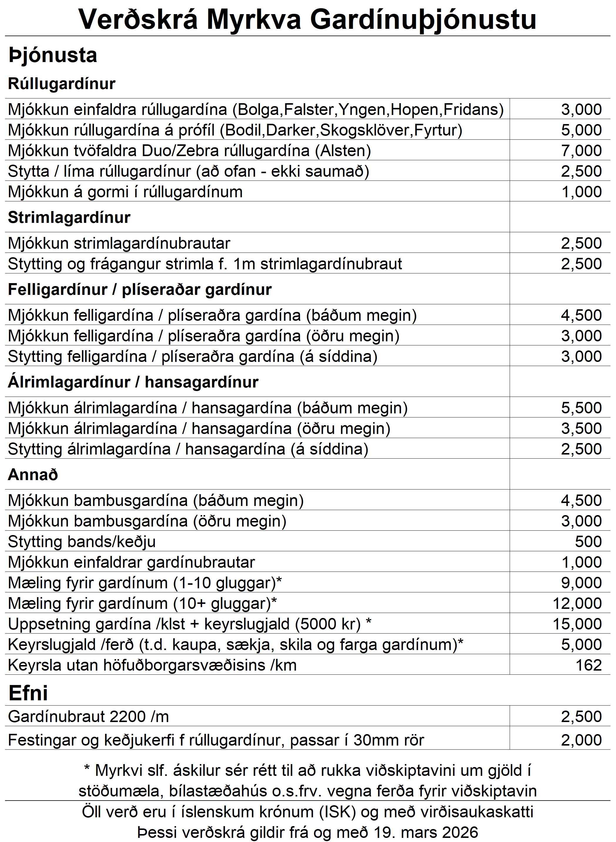 Verðskrá